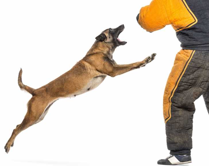 Pendant l’attaque elle-même, le chien est entraîné à saisir pour ne plus jamais relâcher : c’est la façon la plus efficace pour lui de neutraliser quelqu’un tout en évitant de le blesser grièvement.