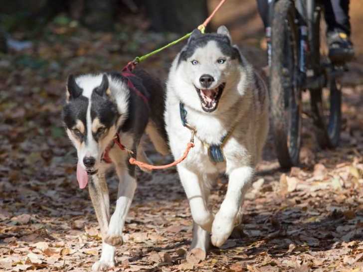 Appelée aussi bike joring, cette discipline consiste à faire du VTT en étant tracté par un ou deux chiens. Les animaux sont reliés au vélo par la ligne de trait, et le musher pédale tout en encourageant le(s) chien(s).