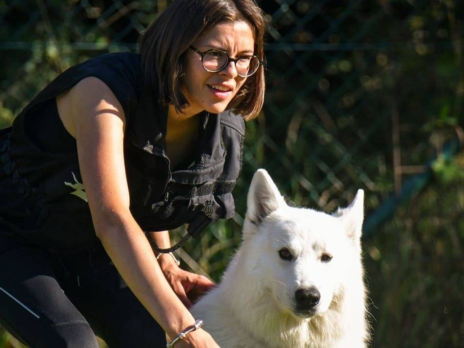Lors de nos séances, mon adorable chienne WhiteTea m’accompagne régulièrement. Sa présence rassurante et sa participation active contribuent grandement à la rééducation des chiens en difficulté.