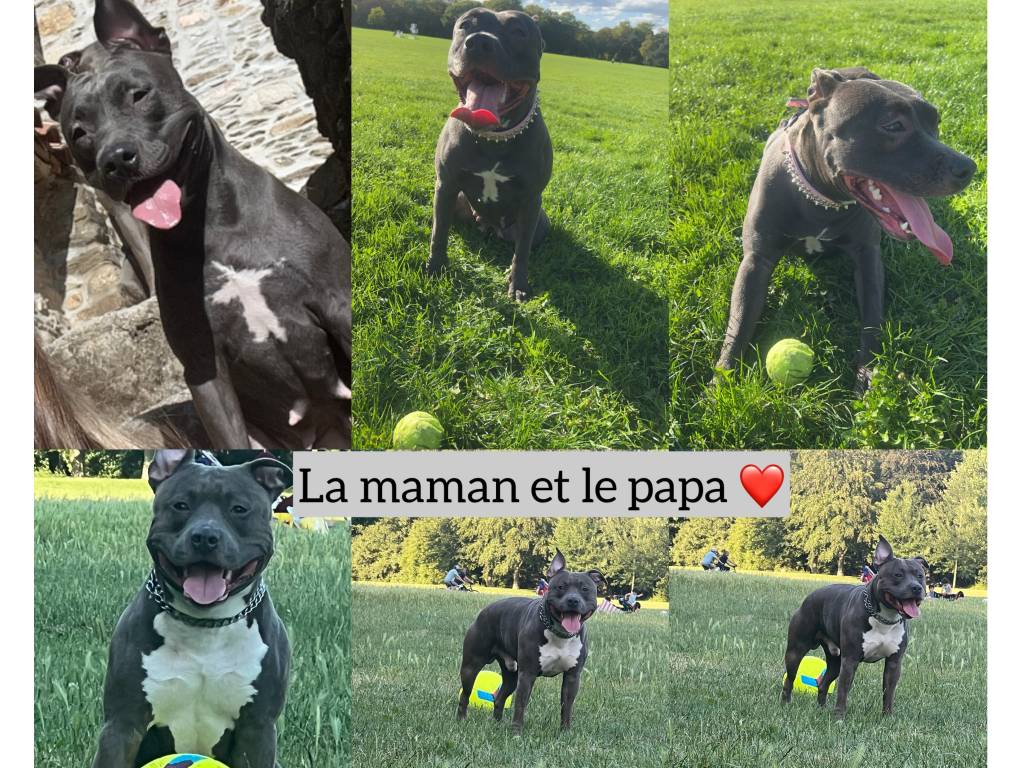 Bonjour :) Je suis éleveuse de staff d’American Staffordshire Terrier bleu et aussi fawn en région parisienne. Mon élevage est familial et je me consacre uniquement à cette race, issue d’une bonne lignée avec pedigree.