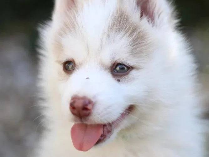 Nous proposons depuis peu des chiots Pomsky, qui sont le croisement de Huskys sibériens avec des Loulous de Poméranie.