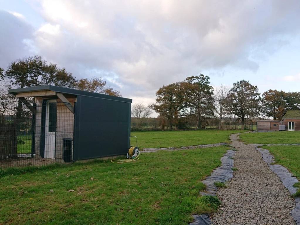 Le centre aéré canin du Chevallier des Truffes est installé sur un terrain arboré et entièrement clôturé de 8000 m², dont deux parcs spacieux dédiés aux jeux et à la détente.