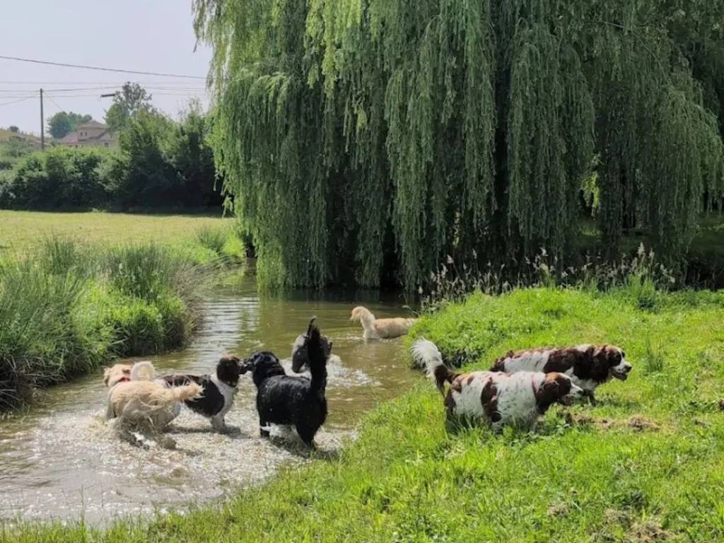 Votre animal dispose d’un jardin individuel ombragé de 80 m² minimum avec chalet confortable et piscine pour se rafraîchir en été. Les sorties quotidiennes en petit groupe sont organisées selon les affinités, dans de grands espaces de jeux incluant étang et piscine, pour favoriser la socialisation et le bien-être.