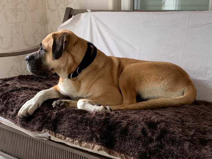 Je m'appelle Bonya ! Ma propriétaire est décédée récemment et je suis à la recherche d'une nouvelle famille. Je vis maintenant chez des amis de ma propriétaire, mais ils ont déjà deux chiens. Je suis une Bullmastiff de 4 ans. Je suis stérilisée, vaccinée, pucée et vermifugée. Je pèse 52 kg.