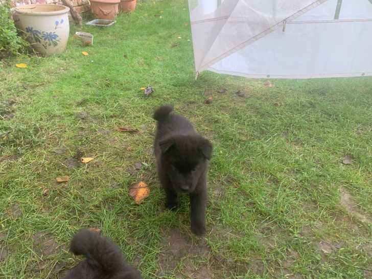 Un chiot femelle à forte prédominance noire, croisée Eurasier et berger batard, issue d'une portée de 6, cherche une famille pour l'accueillir.