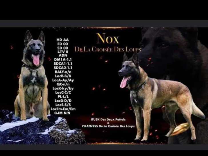 Ils sont issus d'une lignée sportive. Le père est Nox de la croisée des loups, titulaire du TCS ring belge, et la mère est Q'Seymi, titulaire du TCS agility mordant