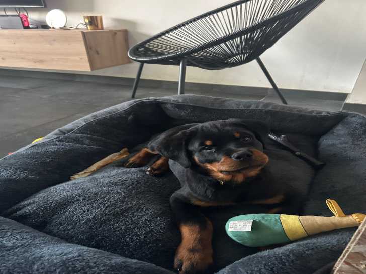 Nous vendons notre chiot Rottweiler. C'est une adorable petite femelle. Elle est sociable, pleine d’énergie, et sociable avec les chiens et les enfants.