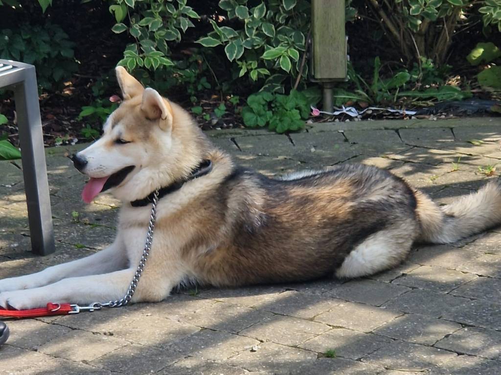 Je cherche une personne sérieuse, de préférence un sportif ou une sportive, car il a besoin de beaucoup se dépenser. S'il se dépense beaucoup, il n'a pas besoin de jardin. Dans la maison, s'il a de belles balades, il ne bouge pas et il est super propre, comme tous les Akitas.
