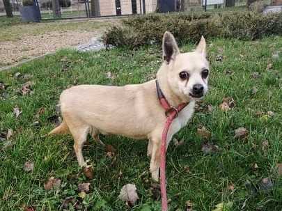 Adeptes de petites races, vous résisterez difficilement à la frimousse d’Alvin. Ce loulou croisé Chihuahua, à la belle robe beige, vous enchantera par son calme. Il fêtera ses 10 ans le 15 mai 2022.