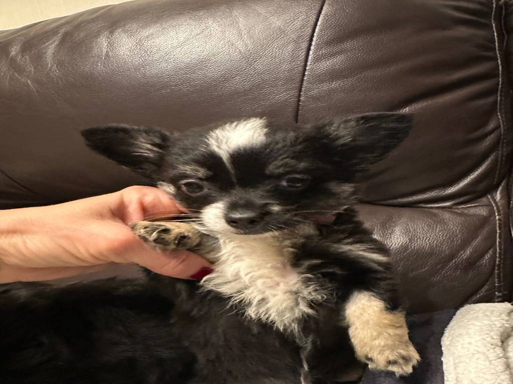 Suite a un désistement avec acompte magnifique petit chihuahua poils longs disponible de suite. Gimmy est un mâle choco tricolore. Il est né le 4 octobre, il peut quitter la maison en ordre de puce et...