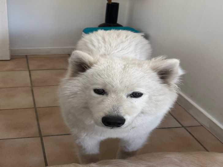 Nous vendons notre chiot femelle Samoyède de 8 mois, avec son passeport et ses vaccins à jour.