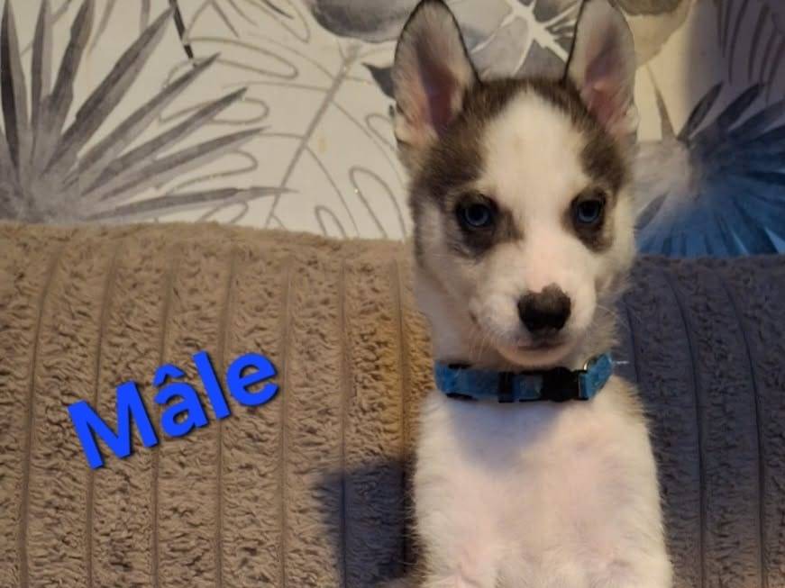 5 adorables chiots Husky nés le 24 novembre 2025 sont à vendre. Ils sont élevés en famille. Il y a 3 femelles et 2 mâles. Ils partiront identifiés et avec un certificat de bonne santé. Ils seront...