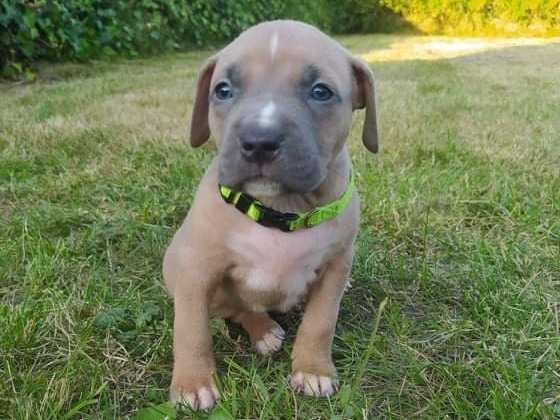 Je vends mon petit chiot American Staff de 2 mois. Il est vacciné et a son carnet. Le chiot est gentil, il veut jouer et il est en bonne santé. Je le vends avec son collier et une corde. Il est d...