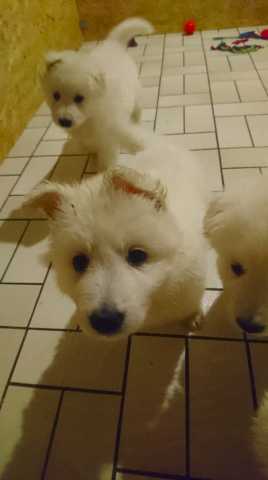 Des chiots Bergers Blancs Suisses à poil long nés le 24 juillet 2019 (4 mâles et 1 femelles) sont disponibles pour réservation. Ils pourront rejoindre leur nouveau propriétaire fin septembre. Ils sont pucés, ont reçus leurs premiers vaccins et sont vermifugés. Tous les chiots disposeront du pedigree de Saint-Hubert.
