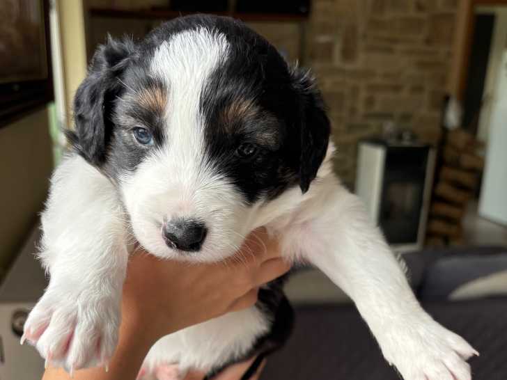 Je vends des chiots Border Collie nés le 25/09/2025. J'ai un élevage familial, les parents sont visibles. Le papa est blanc et noir, la maman est bleu et blanc. Les chiots partiront primo-vaccinés,...