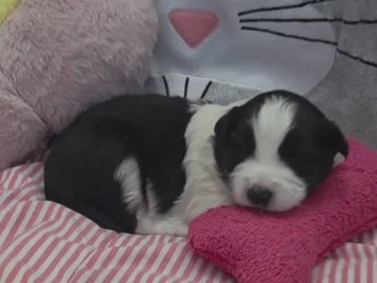 4 chiots Border Collie sont nés ce 16/02/2026 : 3 mâles bleu et blanc et 1 femelle noir et blanc.
