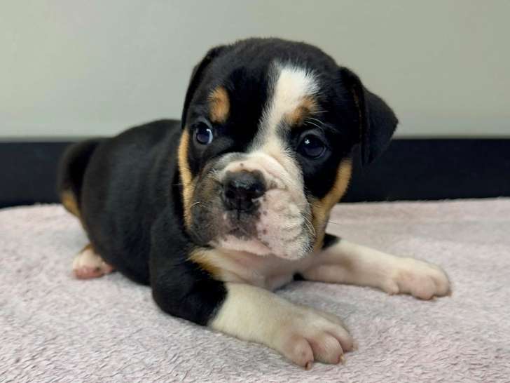 Nous proposons exclusivement des chiots Bouledogue Anglais issus de notre propre élevage. Pour un bon démarrage, un panier coussin de chez Duvo Plus et un kit chiot sont offerts.