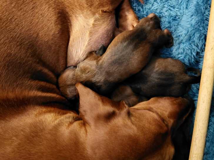 Des chiots Teckel Nain sont disponibles directement. La maman est Megan, elle est de couleur chocolat tan. Le papa est Nino, de couleur arlequin isabella. Les chiots sont nés le 10/11/2025. Ils sont ...
