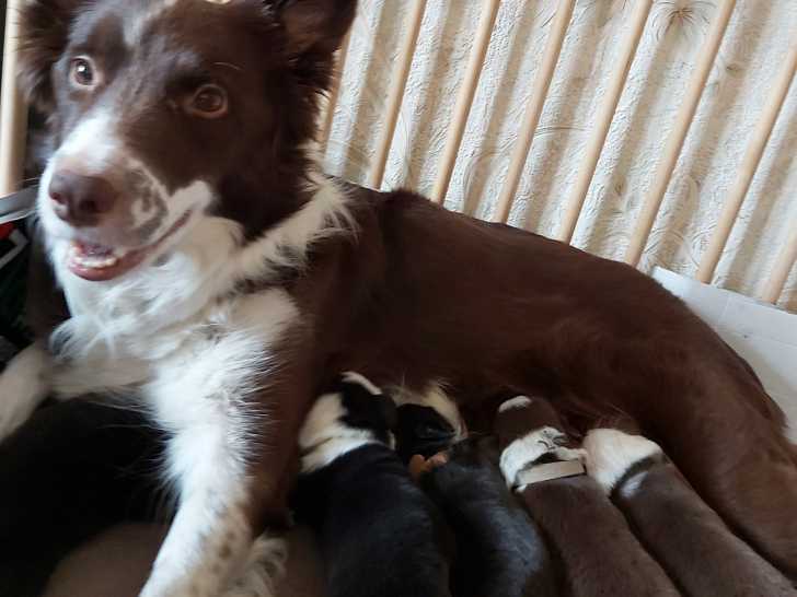 4 chiots Border Collie sont nés ce 16/02/2026 : 3 mâles bleu et blanc et 1 femelle noir et blanc. Les parents sont visibles. Nous avons un élevage familial, les chiens pratiquent l'agilité et l'obéissance....