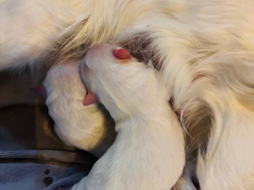 Ce sont deux adorables femelles de couleur blanche, à poil long. 🤍
