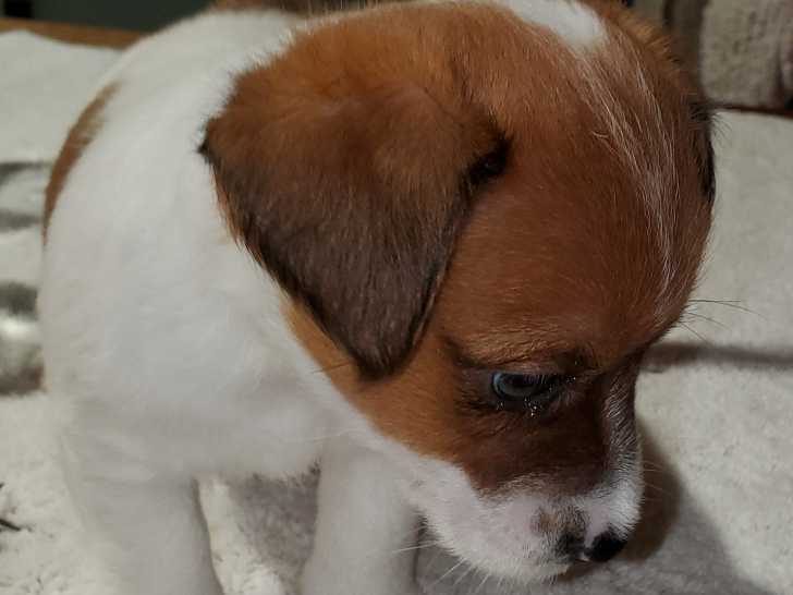 Des chiots Jack Russell nés à la ferme le 7 avril 2025 sont à vendre. Ils sont élevés en famille, en compagnie d'autres animaux (autres chiens, chats, poules, daims et chèvres). Les deux parents sont...