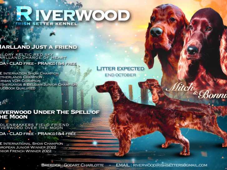 Une superbe nichée de Setter Irlandais est attendue pour le 12 Mars 2026 Les parents ont fait tous les tests de santé disponibles pour la race - Antagene -et sont tous les deux exempts de la dysplasie des...