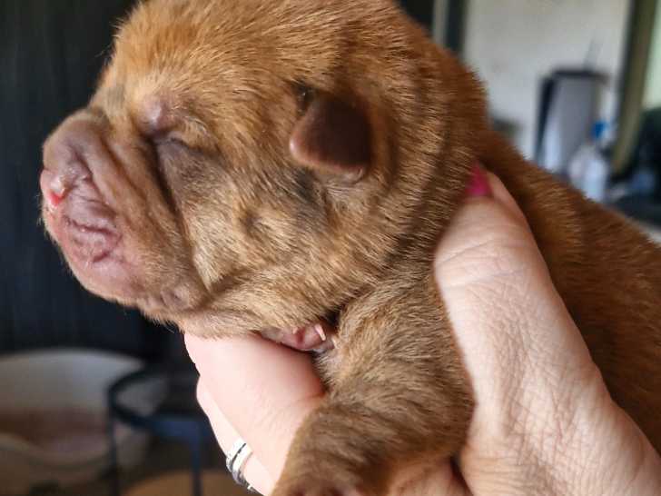 De très beaux chiots Shar-Peï sont à vendre. Il y a 3 femelles et 2 mâles, de couleur chocolat, lilac et rouge. Ils auront le poil bear ou brush, c'est encore à déterminer.