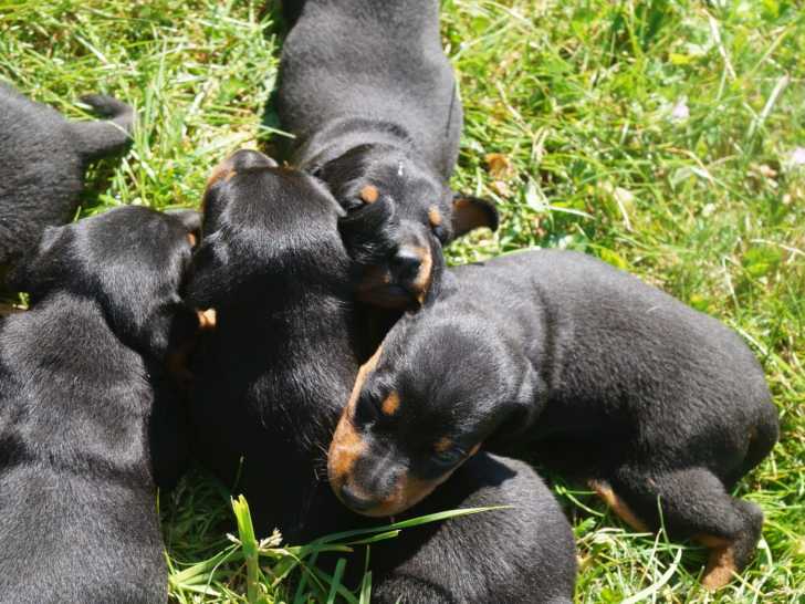 L’élevage Du Mont Belle Vue a le plaisir de vous annoncer la naissance d’une portée de six ravissants Pinscher Nain le 23 avril 2022. Ces attendrissants bouts de chou, trois femelles et trois mâles, affichent une robe noire et feu qui ressemble sans conteste à celle de leurs parents, Athos (dit Peper) et Slicey New Sensation (dit Spicey). Les géniteurs sont tous les deux pedigrees FCI.