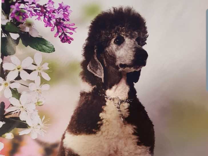 Mon Grand Caniche gris anthracite et blanc est disponible pour saillie.