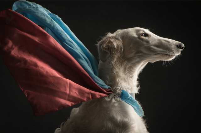 Quentin Bel Ami du Grand Sérail est un très beau jeune mâle Barzoï, blanc et crème.
