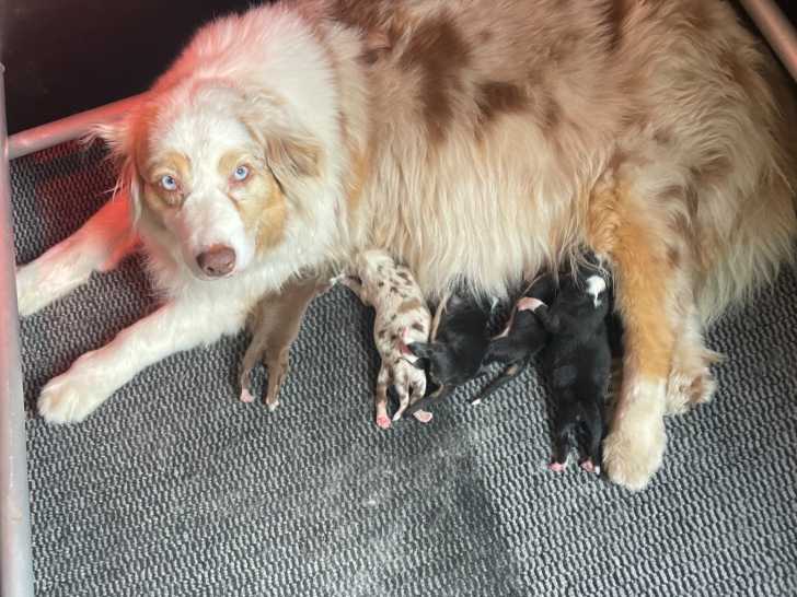 L’élevage From Luna’s Place est heureux de nous annoncer la naissance de splendides Bergers Australiens, Pedigree FCI, le 29 avril 2022. Une femelle et un mâle restent encore disponibles à la réservation. Ces craquantes boules de poils pourront quitter le cocon familial le 24 juin 2022 au prix de 1750 euros chacun.