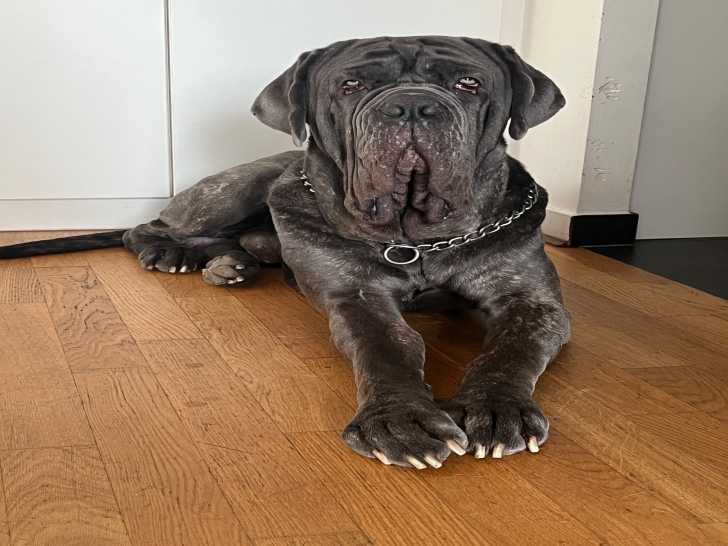 Rino, jeune Mâtin de Naples bleu de 2 ans et demi, est disponible pour saillies en Belgique. C'est le fils de Quintillo Casa si Fiducia et de Tinkerbell Dell Tutto Cuore. L'ADN des parents est certifié.