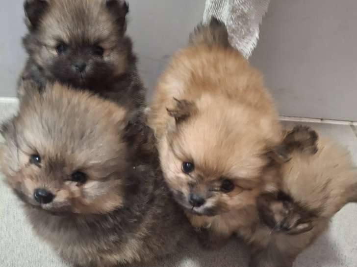 Nous avons un petit élevage familial de Spitz Nains. Une nouvelle portée est arrivée le 09/11/2025. Il y a 3 femelles et 1 mâle, deux femelles sont couleurs orange roux comment sont maman et le deux chiots un mâle et femelle sont couleur blue gris noisette !