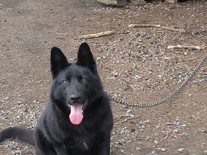 Nous vendons notre chienne Berger Allemand noire avec un pixel blanc sur le torse, d’où son nom de Pixel. Elle est propre, intelligente et affectueuse.