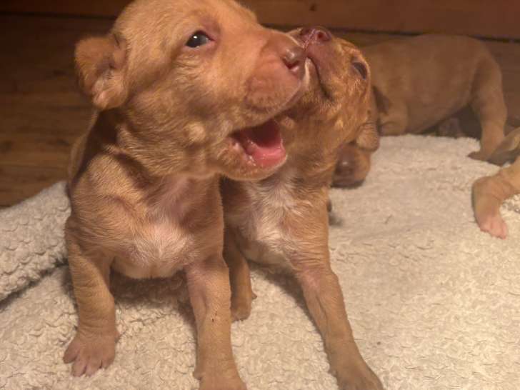 Nous proposons 8 magnifiques chiots American Staff à l'adoption. Ils sont nés le 28 décembre 2025. La portée se compose de 5 mâles et 3 femelles, tous en parfaite santé. Les chiots grandissent au sein de...