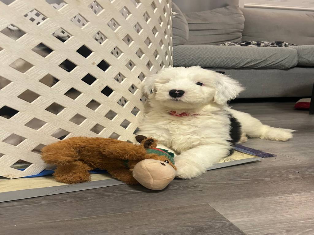 Des chiots Berger Anglais nés le 30 septembre 2025 sont à vendre.