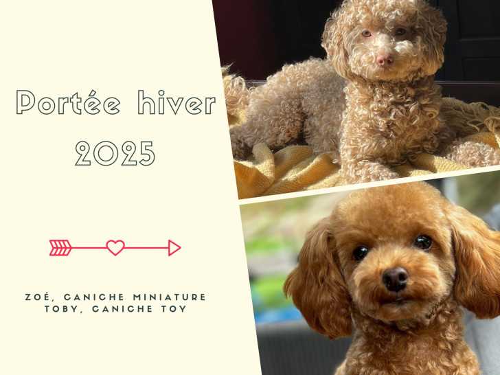 Des chiots Caniche vont naître en mars 2025. Les parents sont Zoé (Caniche miniature) et Toby (Caniche toy). Les réservations sont ouvertes dès maintenant.