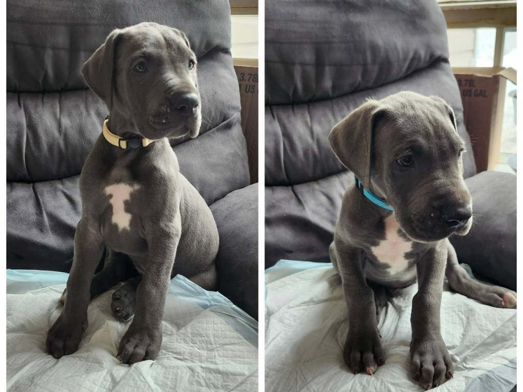 Nous proposons des chiots Dogue Allemand nés le 20 novembre 2025, habitués aux animaux et aux enfants. Il reste 3 femelles noires, 1 femelle bleu arlequin et 1 mâle noir. Nos chiots grandissent en famille et...