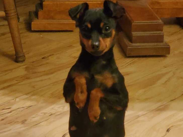 Je vends ma chienne Pinscher. Elle est très sociable et aime les enfants. Elle est opérée et vaccinée. Elle vient avec sa petite cage si vous désirez, ainsi que d'autres accessoires (chandail, collier et...