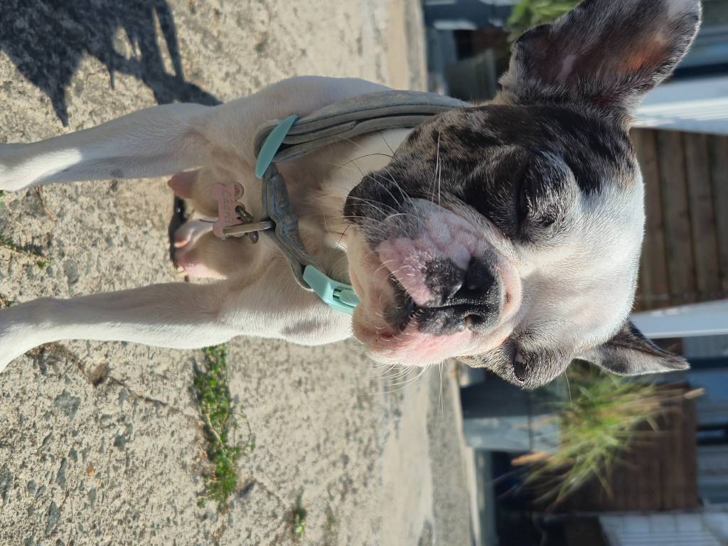 Elle est très bonne avec les enfants et très colleuse. Elle est joueuse et aime se reposer au soleil.