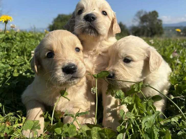 Une portée de six chiots Golden Retriever dont trois mâles et trois femelles est à vendre. Ces petits de couleur sable et blanc, socialisés avec toutes sortes d'animaux, sont disponibles respectivement pour 1400 euros les mâles et 1500 euros les femelles.