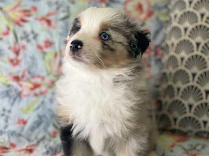 Un mâle Berger Américain Miniature bleu merle est disponible à la réservation. Ce petit beau gosse est issu de parents inscrits au Livre des Origines Français (LOF), confirmés et testés sains.