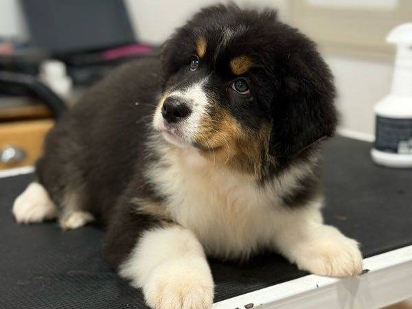 Armani est un mâle Berger Australien queue longue âgé de deux mois et demi, disponible suite à un désistement. Ce petit ours attentif et avenant possède un caractère exceptionnel.