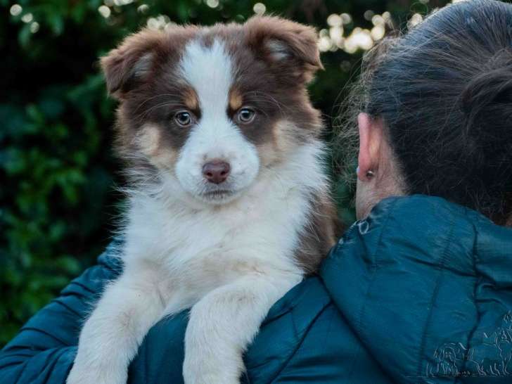Nous vous proposons Agave, femelle Berger Américain Miniature née le 22 mai 2025, câline, joueuse et idéale pour une personne active ou le sport canin. Elle vit avec nous et s’habitue aux enfants, aux autre...