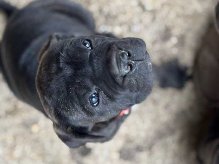 Amma, jeune Cané Corso née le 30 octobre 2025, partage sa portée avec deux frères. Cette petite espiègle montre déjà une belle assurance et une grande curiosité.