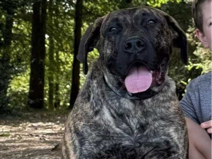 Un chiot femelle Presa Canario est née le 16 février 2025 dans notre élevage. Il nous reste Azur Fontystaff, une femelle bringée de 8 mois, non stérilisée et super avec les enfants et les chats.