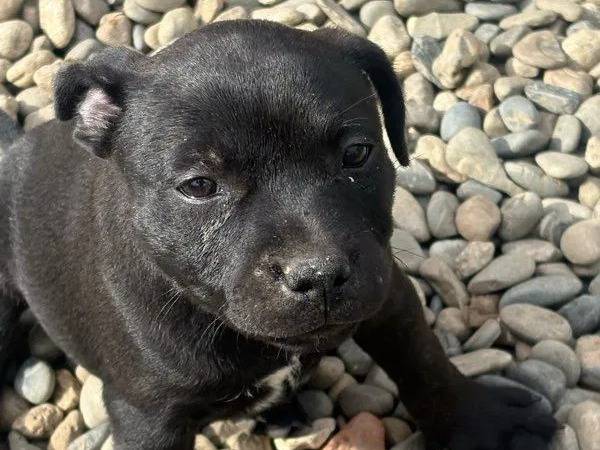Notre élevage familial Black And Blue Dinasty vous propose un superbe chiot Staffordshire Bull Terrier inscrit au Livre des Origines Français (LOF), un mâle noir né le 22 mai 2025. Celui-ci provient d’une...