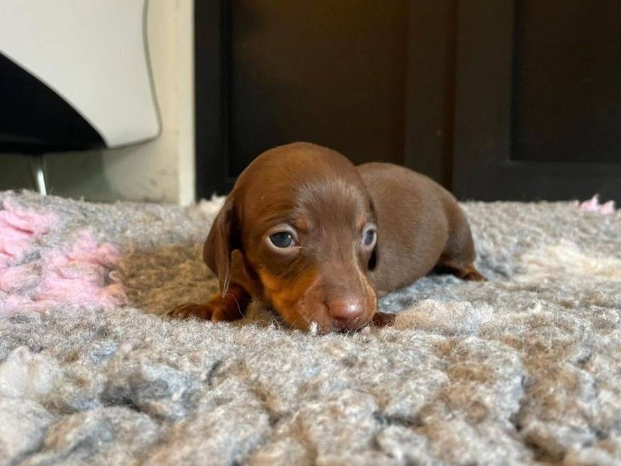 Notre élevage propose une portée de Teckel Nain issue de parents LOF. La petite femelle chocolat sera élevée en famille et suivie pour un développement physique et comportemental optimal.