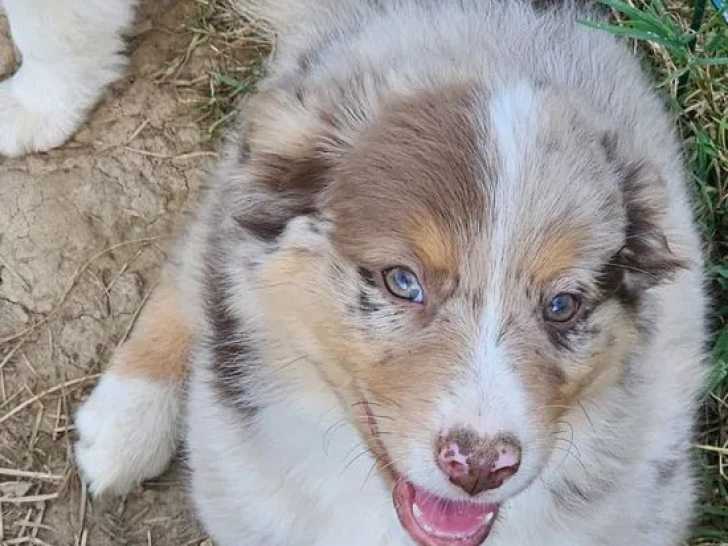 Sur une portée de huit chiots Berger Américain Miniature nés en septembre 2025, il reste deux petits bleu merle à queue longue à vendre. Ces mâle et femelle aux yeux bleus sont disponibles mi-novembre. Ils...