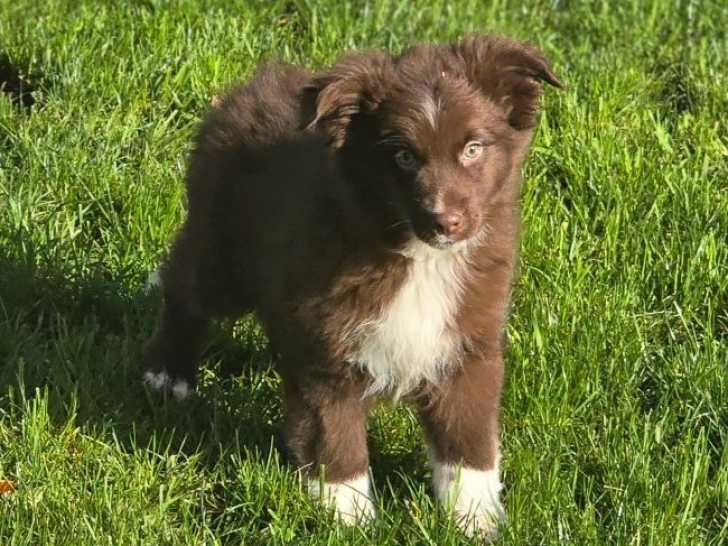 Il nous reste un petit mâle Berger Américain Miniature disponible sur une portée de deux, né le 29 juillet 2025. Ce compagnon rouge bicolore, inscrit au Livre des Origines Français (LOF), arbore un superbe caractère joyeux et très contact.